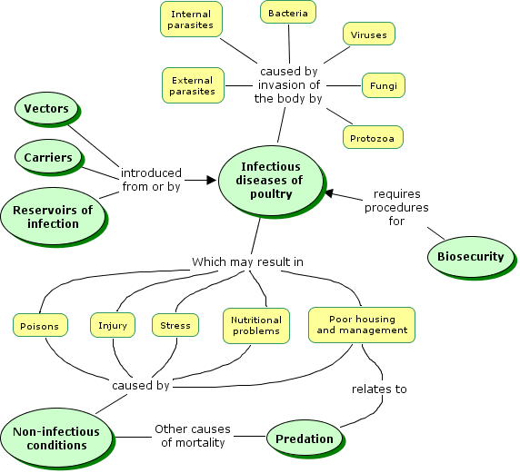 Indirect causes, like inadequate nutrition or poor housing, may weaken a chicken's immune system or increase exposure to infectious organisms. In turn, this makes chickens more susceptible to infectious diseases.